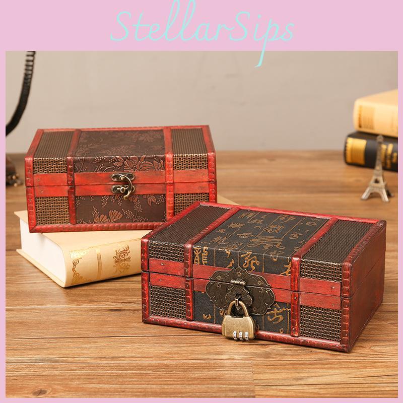 Pudełko do przechowywania w stylu vintage wykonane z drewna zostało zaprojektowane do organizowania i ochrony małych przedmiotów dzięki bezpiecznemu mechanizmowi blokującemu.. Wykonany z trwałego drewna, ma wymiary 23 cm x 16 cm x 9,5 cm i oferuje pojemność 1 l, co czyni go idealnym do kompaktowych rozwiązań do przechowywania. Pudełko charakteryzuje się różnorodnością wzorów inspirowanych stylem retro, w tym opcjami z zapięciami motylkowymi i zamkami na hasło, łącząc funkcjonalność z estetycznym wyglądem.