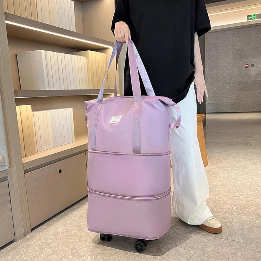 Collapsible Trolley Bag with Wheels Luggage Rolling Bags Large Capacity Dry-Wet Separation Unisex Business Trip Bag