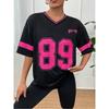 Letnie Damskie T-shirty Numer 89 Krótki Rękaw Trend Nadruk 3D Dekolt V Sportowe Koszulki Streetwear Oversize Casual Moda Damski Top