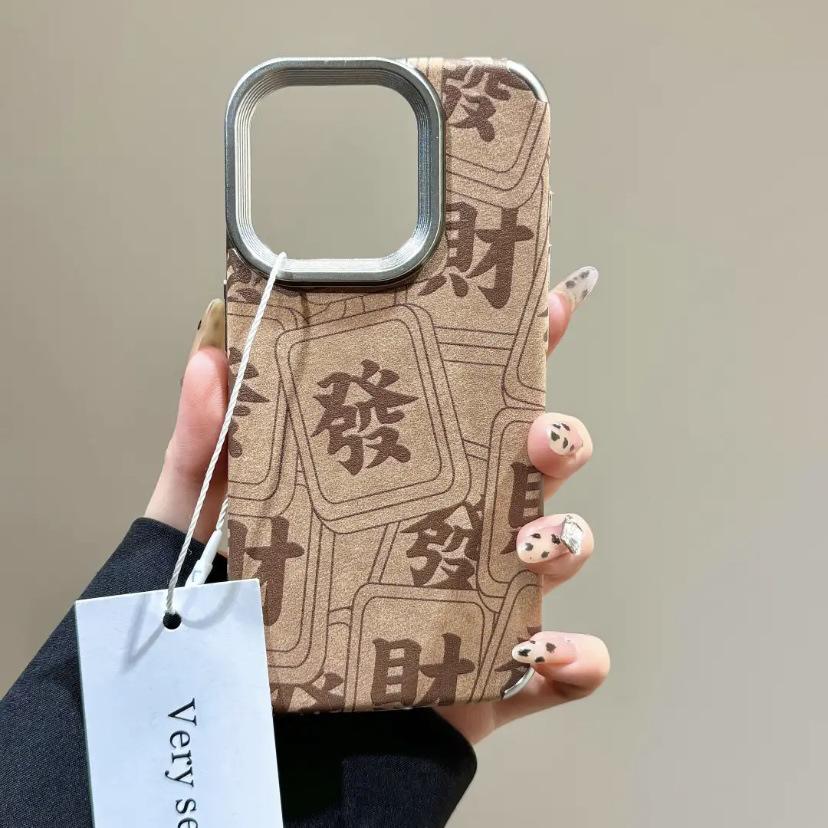Autumn and Winter Skin Texture Brown Background Fortune Text for IPhone16 Mobile Phone Case 15promax for Apple 14/13 Anti-fall