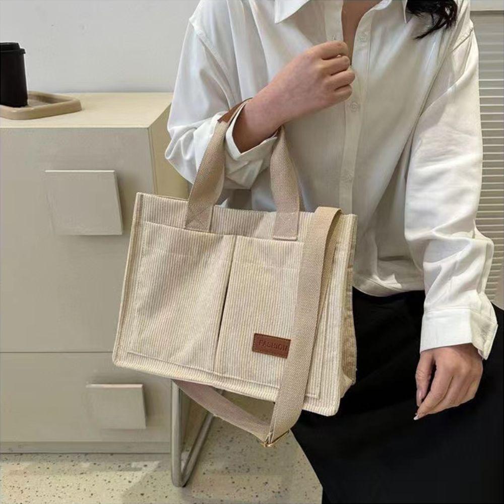 Korean Style Corduroy Tote Bag Simple Cloth Handbag Cute Canvas Shoulder Bag Women