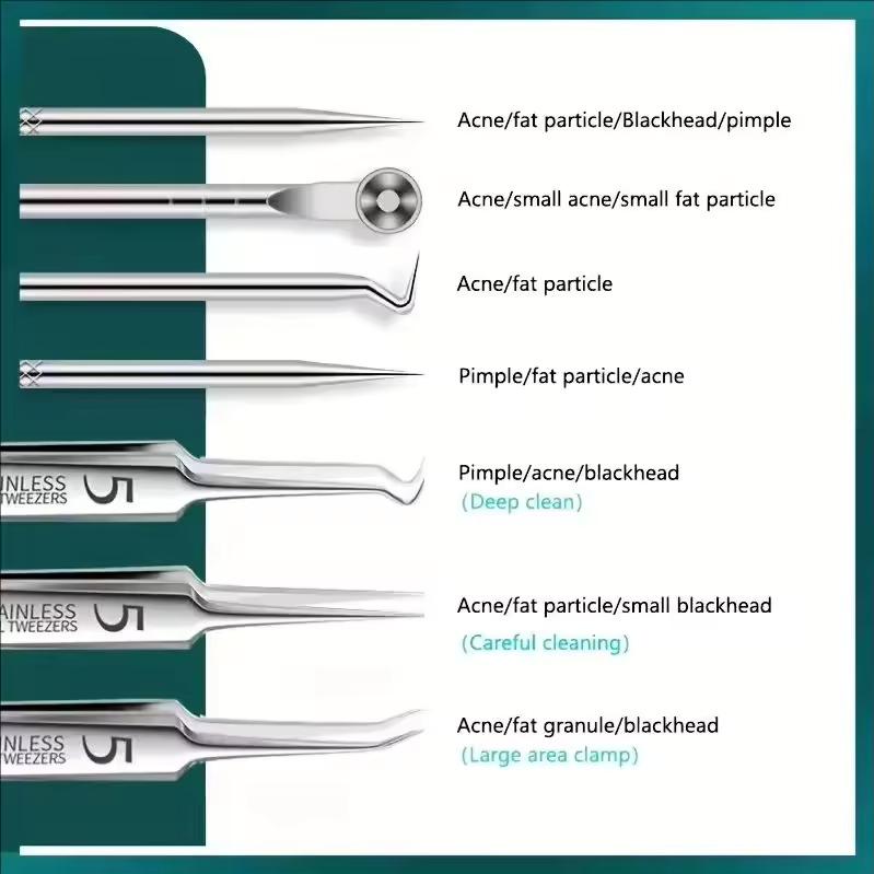 8 szt. Klips do usuwania drzazg, trądziku ze stali nierdzewnej, Pęseta do komórek, Klips do zaskórników, Igła do wyprysków, Narzędzia do usuwania trądziku w salonie kosmetycznym