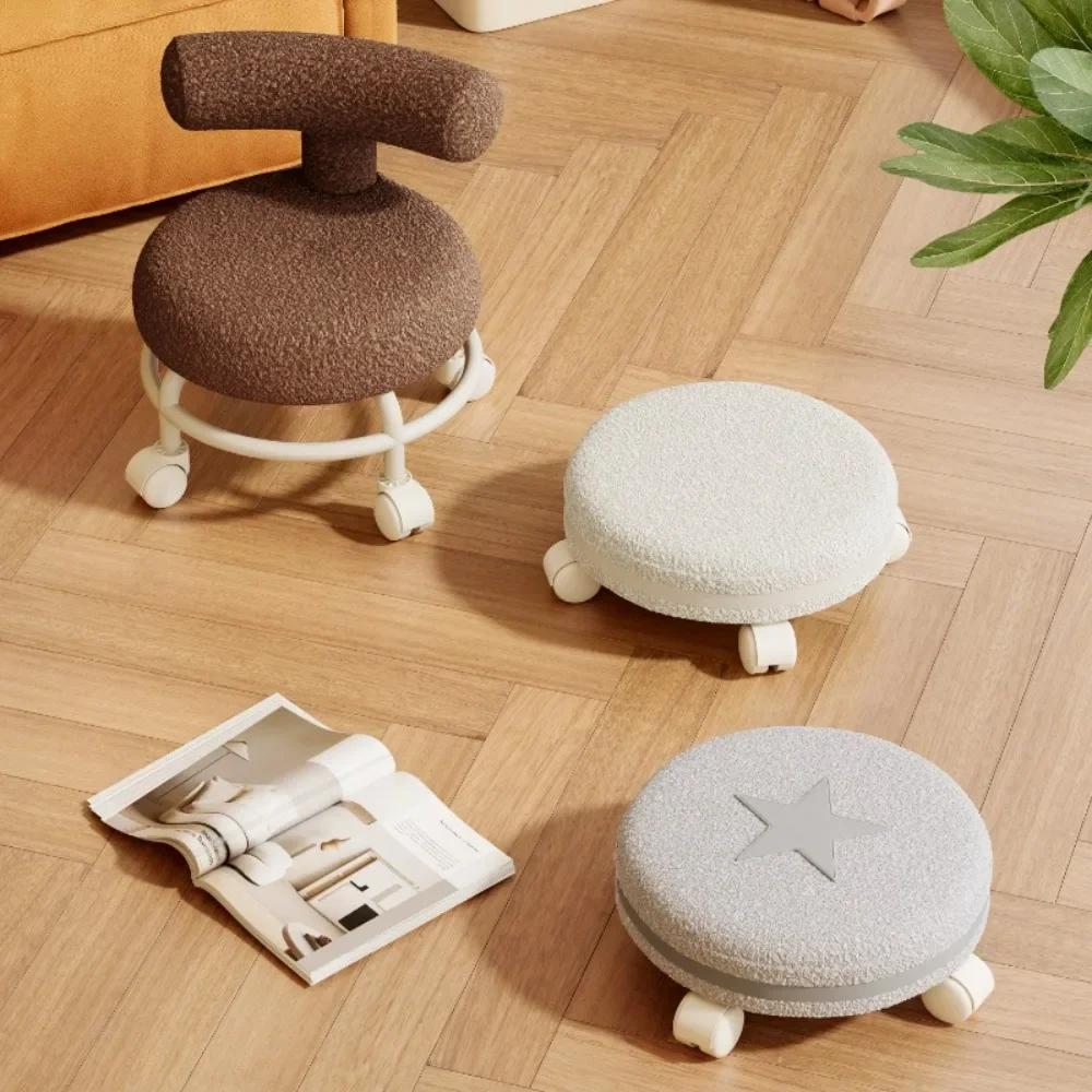 Backrest Low Stool Can Rotate Freely Home Chair Can Move Chair Silent Sliding Stool Cream Style Children's Light Luxury Chair