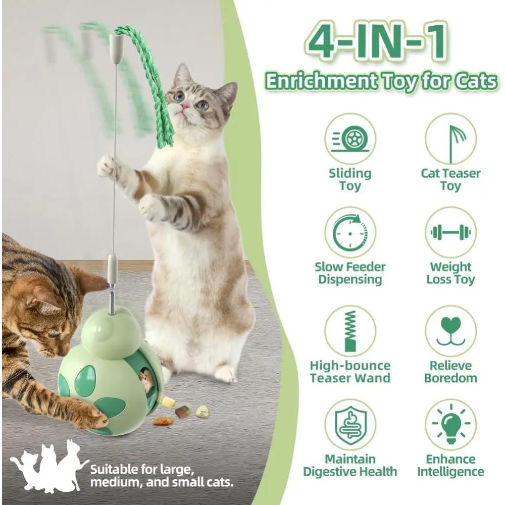 Interactive Cat Toy for Indoor Cats Tumbler Treat Dispenser Teaser Wand/Slider for Anxiety/Boredom Relief Kitten Weight Loss