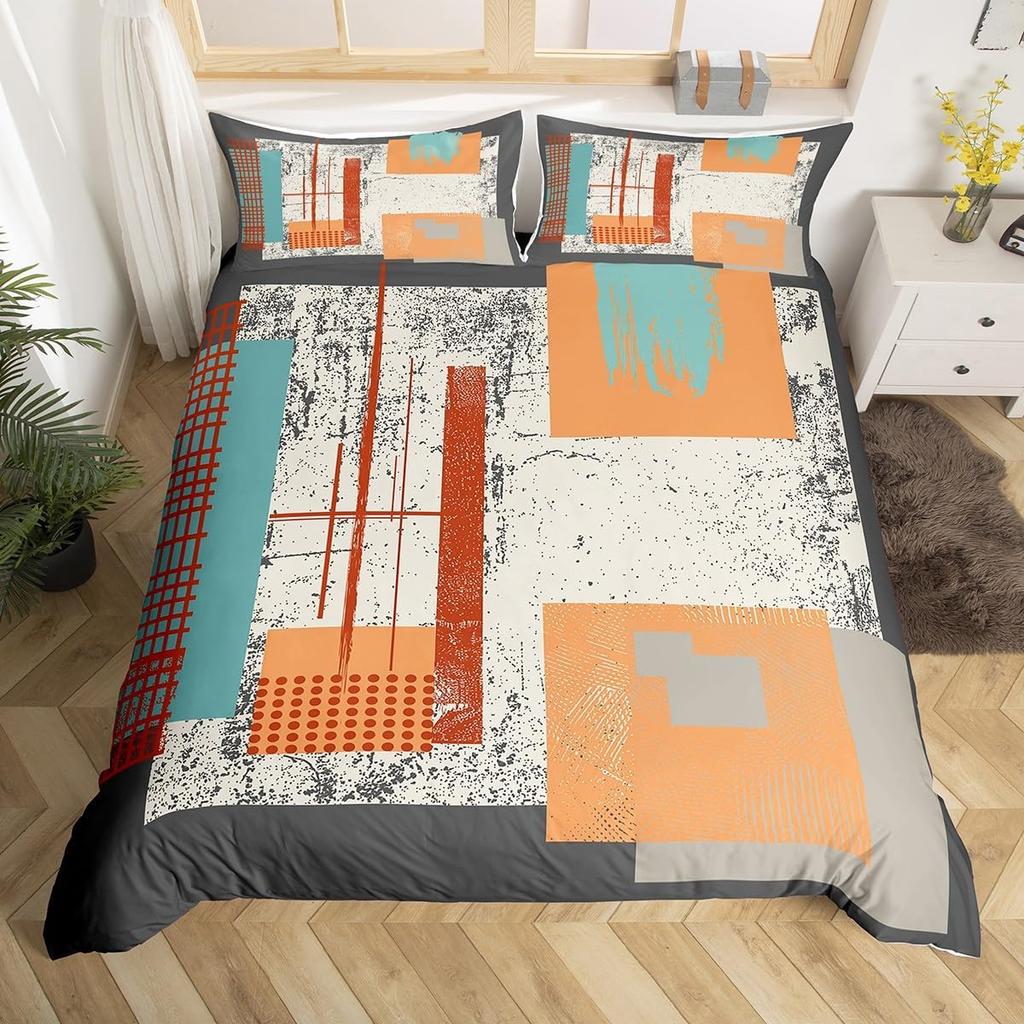 Vintage Striped Line Art Duvet Cover King Size Set Grey Black Red Orange Bedding Set Geometric Oil Painting Graffiti Decoration