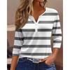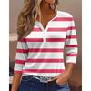 2025 Summer New Women's Casual V-Neck Button Striped T-Shirt Fashion Versatile Top for Europe and America