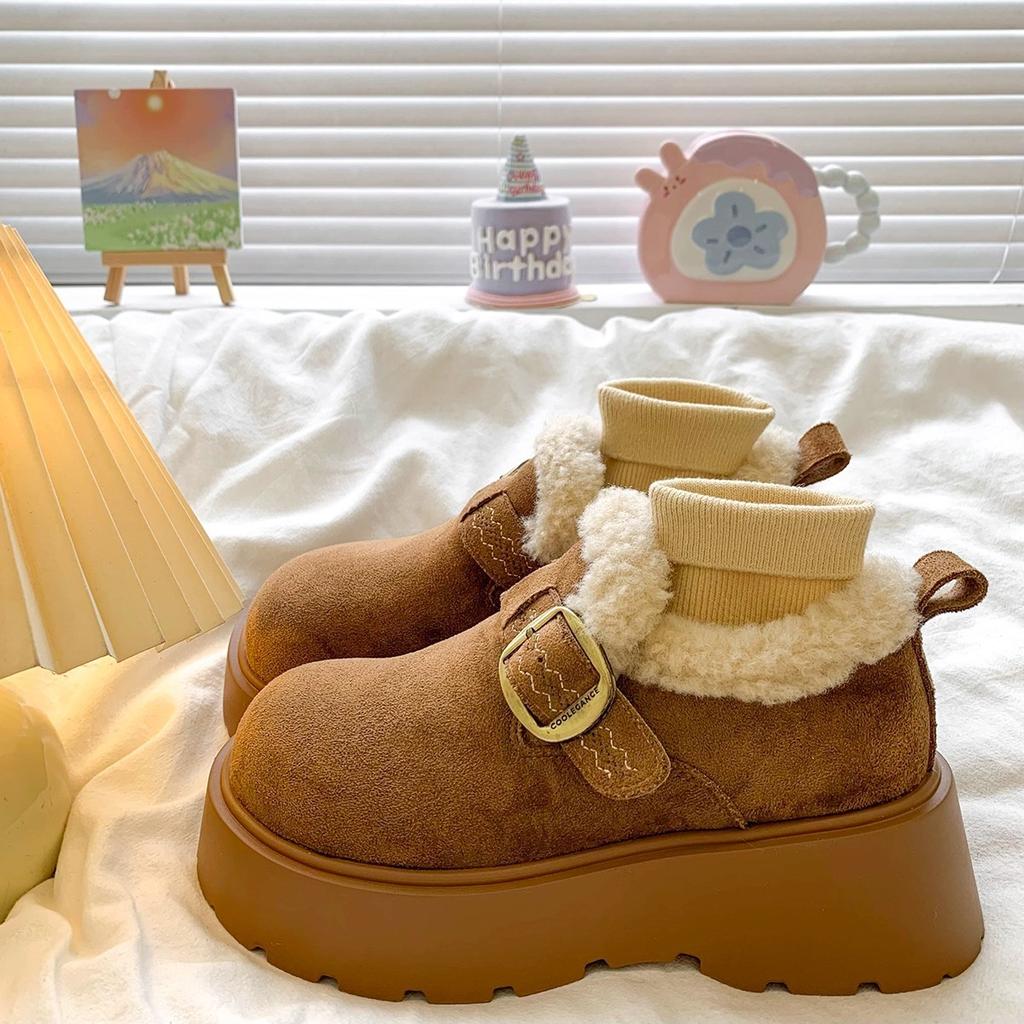 Leather love retro thick-soled velvet snow boots women's new autumn and winter warm versatile cotton shoes