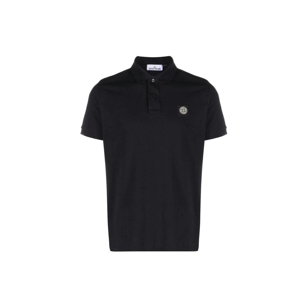 Stone Island Icon Fitted Button Short Sleeve Polo Shirt Men Polo Shirts Navy-Blue 79152SC17-A0020