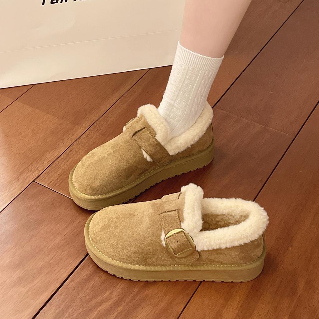 Winter snow cotton shoes retro new warm and velvet Doudou soft-soled fluffy pedal cold-proof cotton shoes