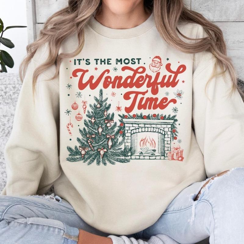 Vintage Christmas Sweatshirt: It's The Most Wonderful Time of The Year Retro Aesthetic Winter Keep Warm Street Fashion Hoody Top