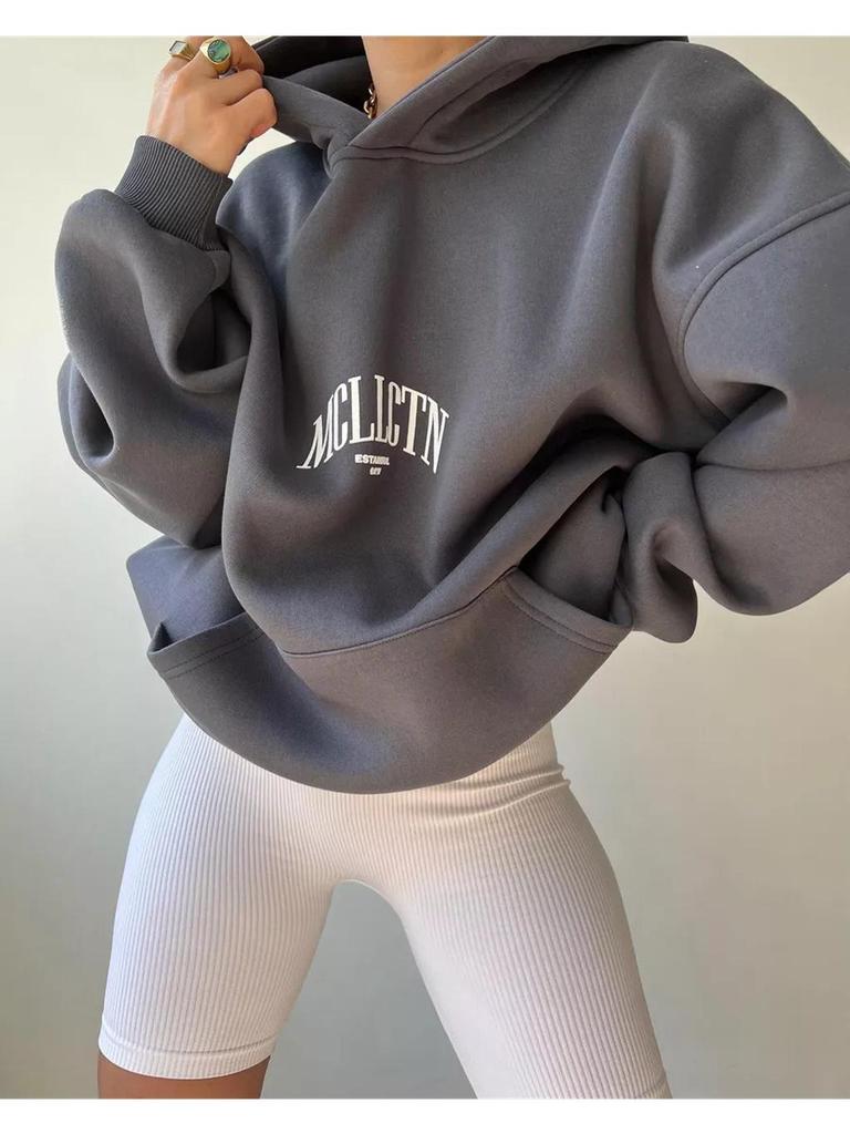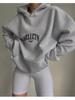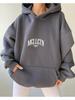 Damska bluza z kapturem i nadrukiem liter, z długim rękawem, na co dzień
