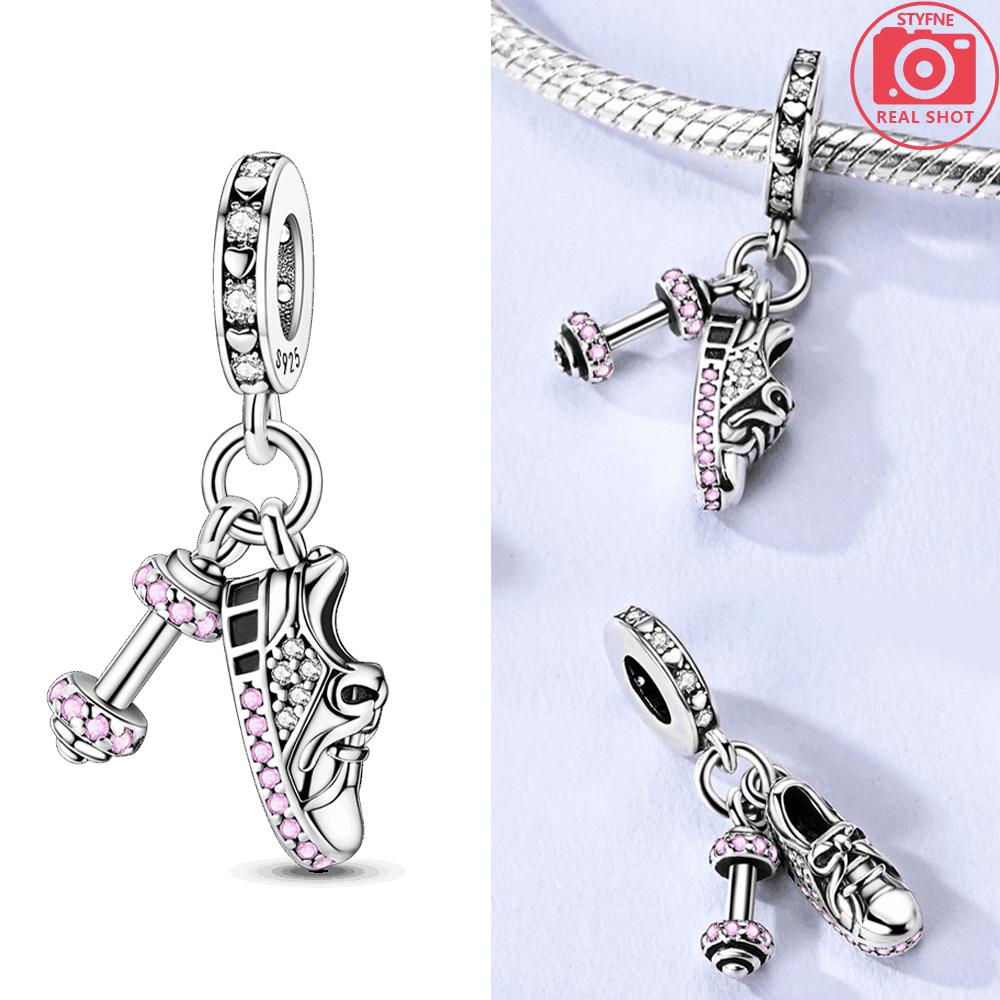 Zawieszki Plata Różowy Cyrkon Hantle Buty Sportowe Wisiorki Pasują do Oryginalnych Bransoletek Zawieszki Dla Kobiet Biżuteria DIY Tworzenie Prezentów