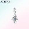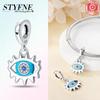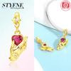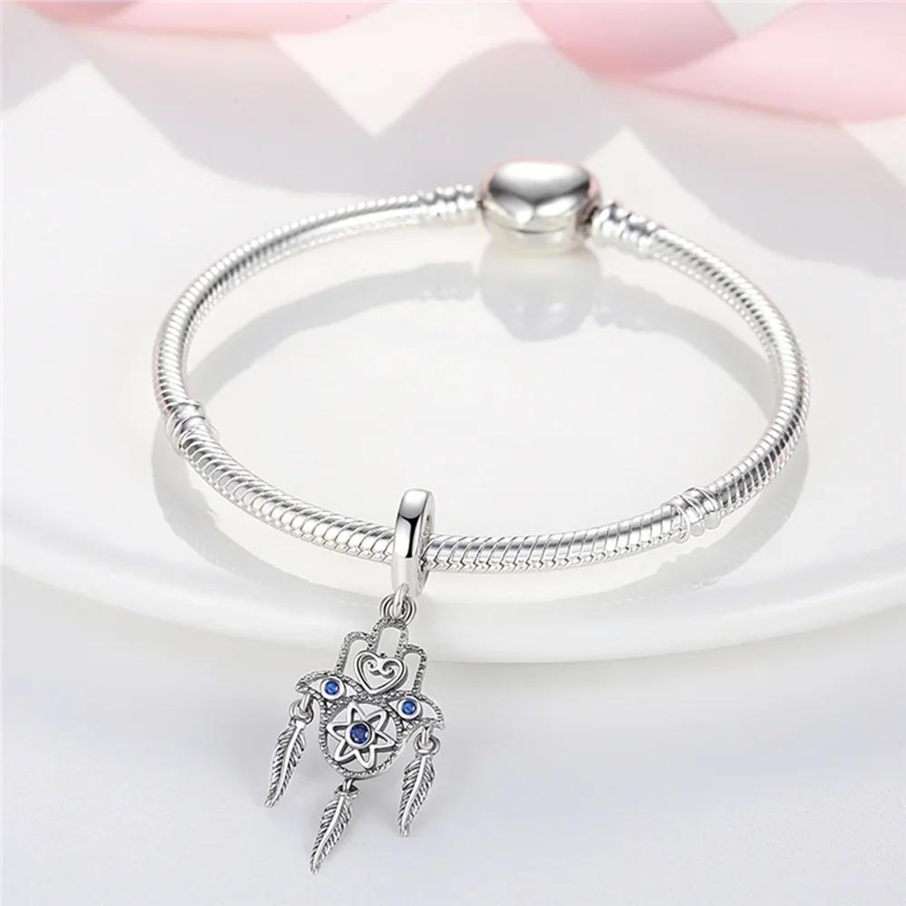 100% Copper Sparkling Zircon Devil'S Eye Cross Golden Palm Holding Red Heart Charms Beads Fit Original Bracelets Diy Jewelry