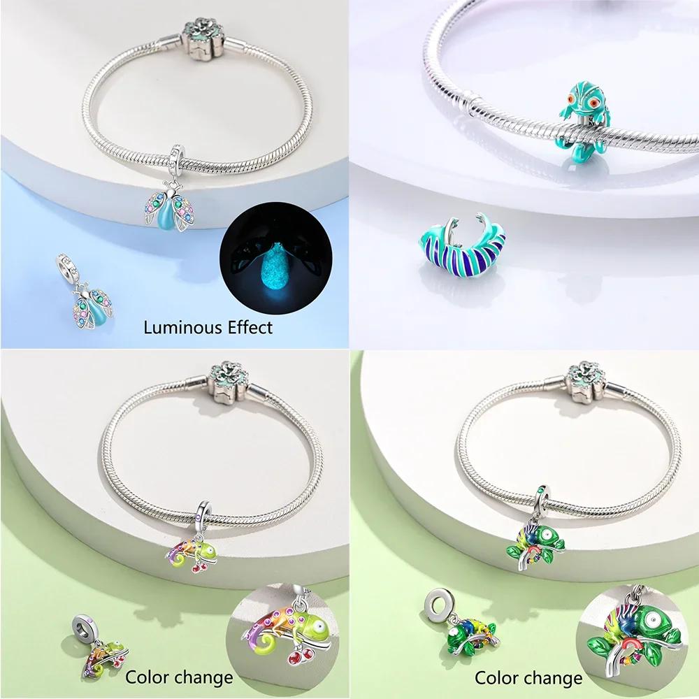 Copper Luminous Chameleon Change Color Butterfly Insect Beads Charms Pendant Fit Original Bracelets Diy Jewelry