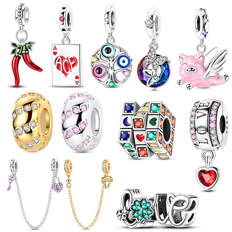 Copper Charms Beads Pendant Flying Piglet Crucifixion Bunny Robot Charm Fit Original Bracelet Women Jewelry Gift