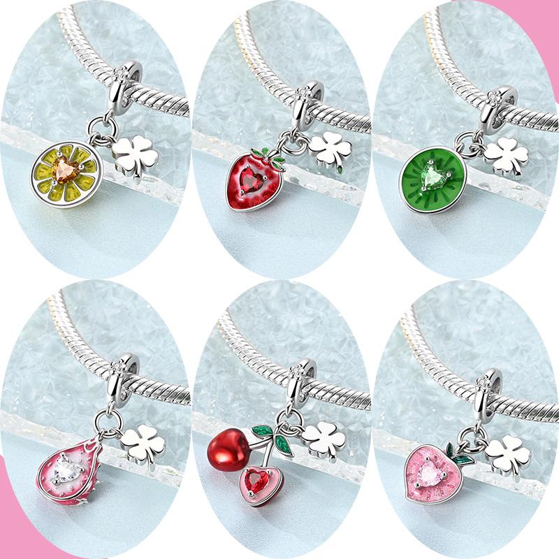 Copper Charm Original Fruit Cherry Peach Lemon Pendants Fit Bracelet Charm Diy Woman Jewelry