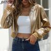 BITCED Women's Spring/Fall Long-Sleeve Zipper Gold Foil Casual Jacket