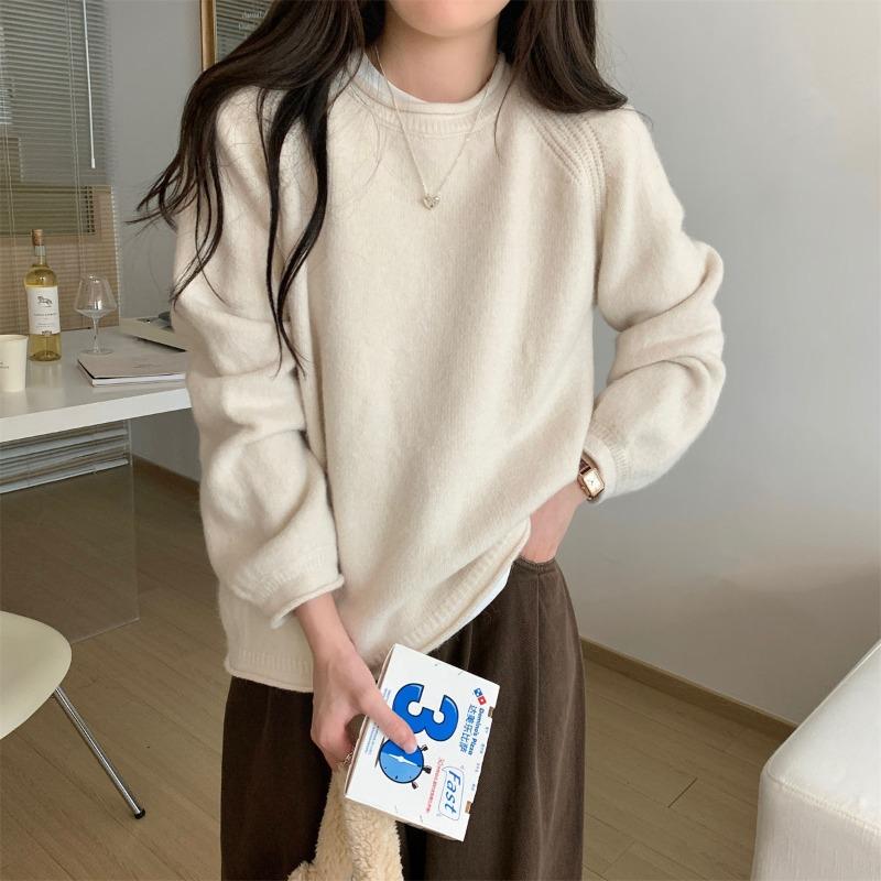 Thickened warm soft waxy sweater women's autumn and winter casual lazy style long-sleeved inner fashionable versatile bottomed knitted top