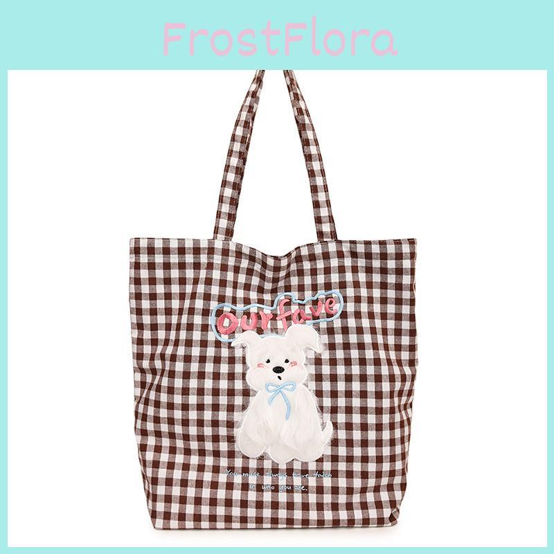 Cartoon Plush Dog Embroidered Canvas Shoulder Bag With Spacious Storage For Students And Teens