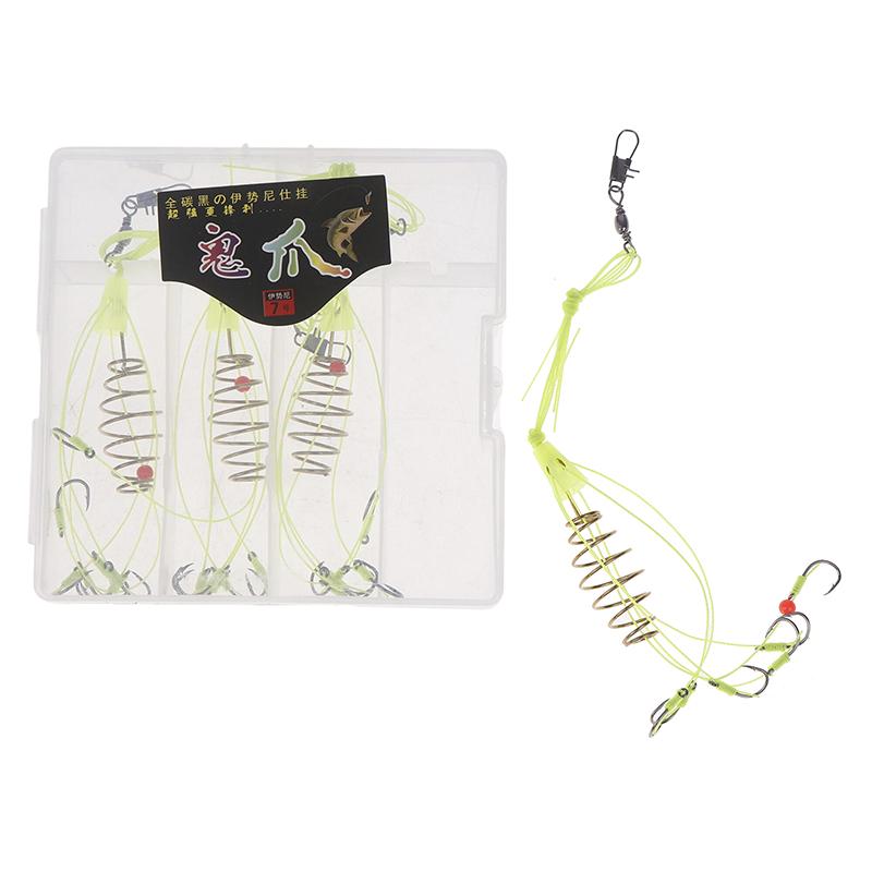 4Pcs/Set 6-Sharp-Hooks Fishing Bait Trap Feeder Cage with Stainless Steel Springs Explosive Fishing Hook for Enhanced Catching