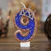 Niebieska Korona Świeczka Urodzinowa Cyfry 0-9 Świeczka z Brokatem Świeczki na Tort Dekoracja na Imprezę Cupcake na Rocznicę