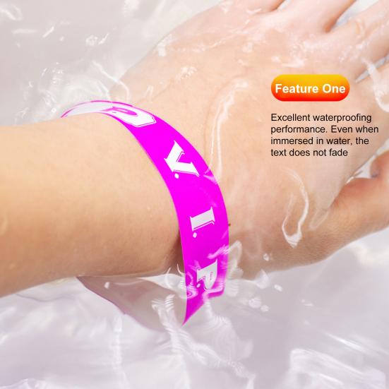 Druk ze zwiększoną widocznością: Każda opaska na rękę charakteryzuje się wyraźnym i jasnym nadrukiem dla lepszej widoczności, ułatwiając efektywne zarządzanie klientami w barach, hotelach, na koncertach i w innych miejscach.. Żywy nadruk poprawia identyfikację i środki bezpieczeństwa, zapewniając płynną obsługę wydarzenia.