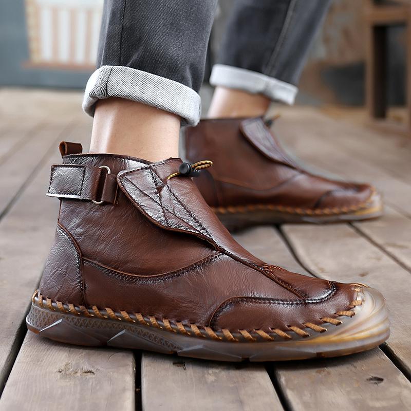 Men Handmade Casual Hiking Boots Outdoor Brown High Top Wide Palm Driving Shoes Large Size