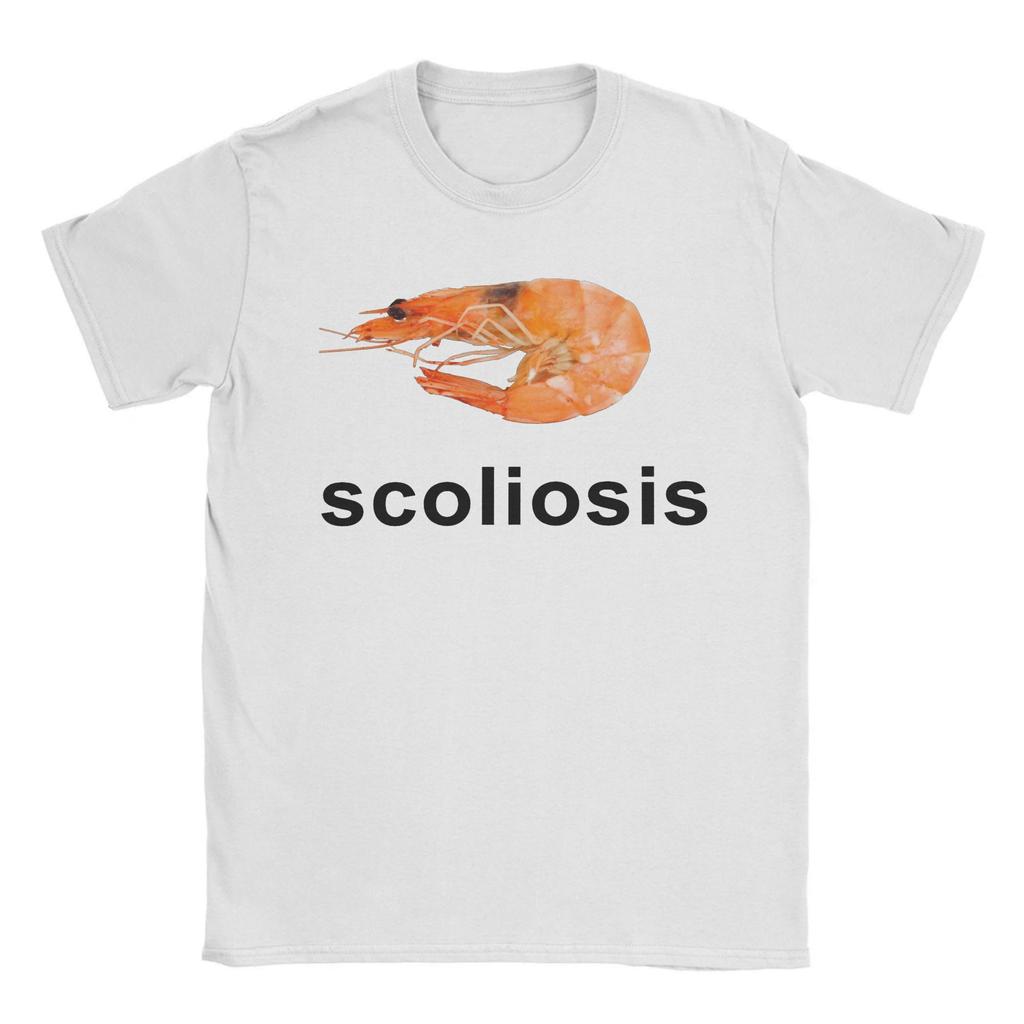 Skolioza Krewetka Krewetki Mem Koszulki Męskie 100% Bawełna Moda dla Mężczyzn Koszulki Okrągły Dekolt T-shirty Krótki Rękaw Ubrania Duży Rozmiar
