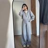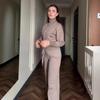 Lady Solid Tracksuit Casual Knitted Cardigan Pants Sets 2 Pieces for Women Stand Collar Zipper Coat Wide Leg Pants