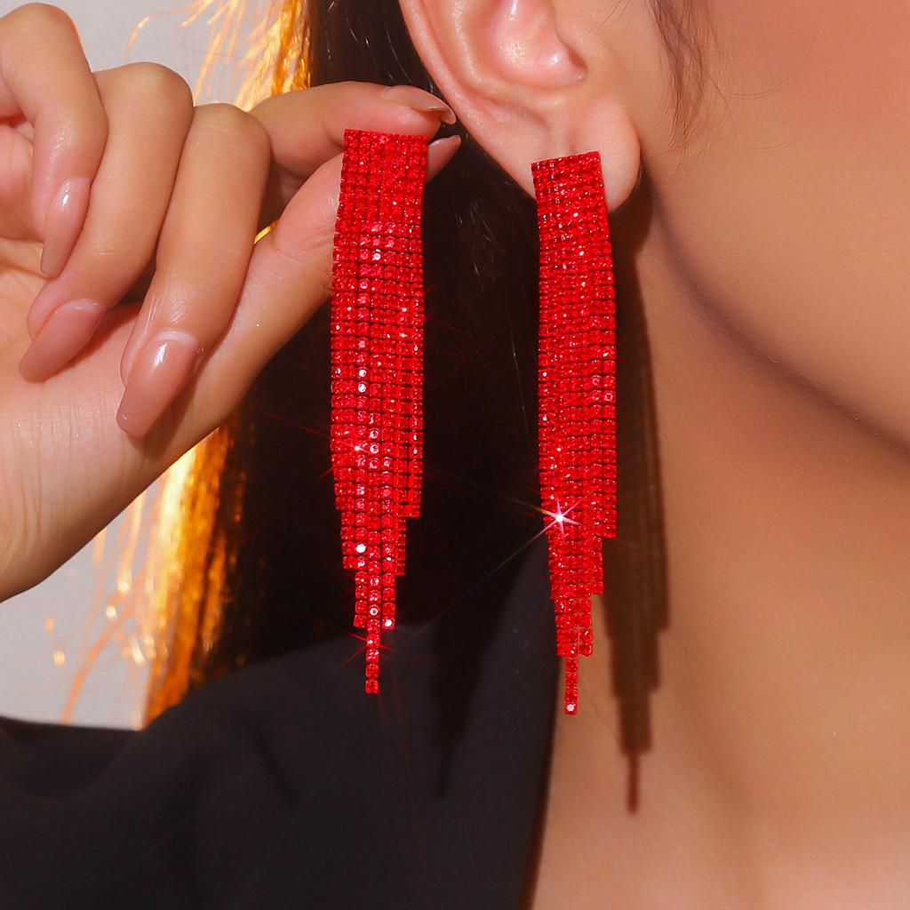 Niekolorowe długie czerwone kolczyki z frędzlami