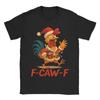 Funny F-Caw-F Chicken Humor Santa Rooster Christmas Lights T-Shirt T-Shirts Fashion Tshirt For Man Short-Sleeve Casual Top Tees