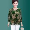 Women's Silk Blouse Spring Autumn Three-quarter Sleeve Loose Fit Rhinestone Plus-size Blouse Mesh Floral Velvet Pullover