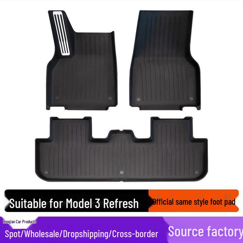 Tesla Model Y & 3 Refresh Floor Mat: Aluminum Alloy Full-Surround TPE Carpet & Pedal Pad