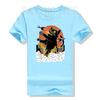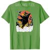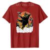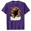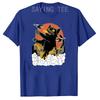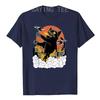 Black Japanese Catzilla Sunset T-Shirt - A Giant Cat Attacks City Funny Kitty Graphic Tees Short Sleeve Anime Comics Cartoon Top