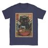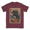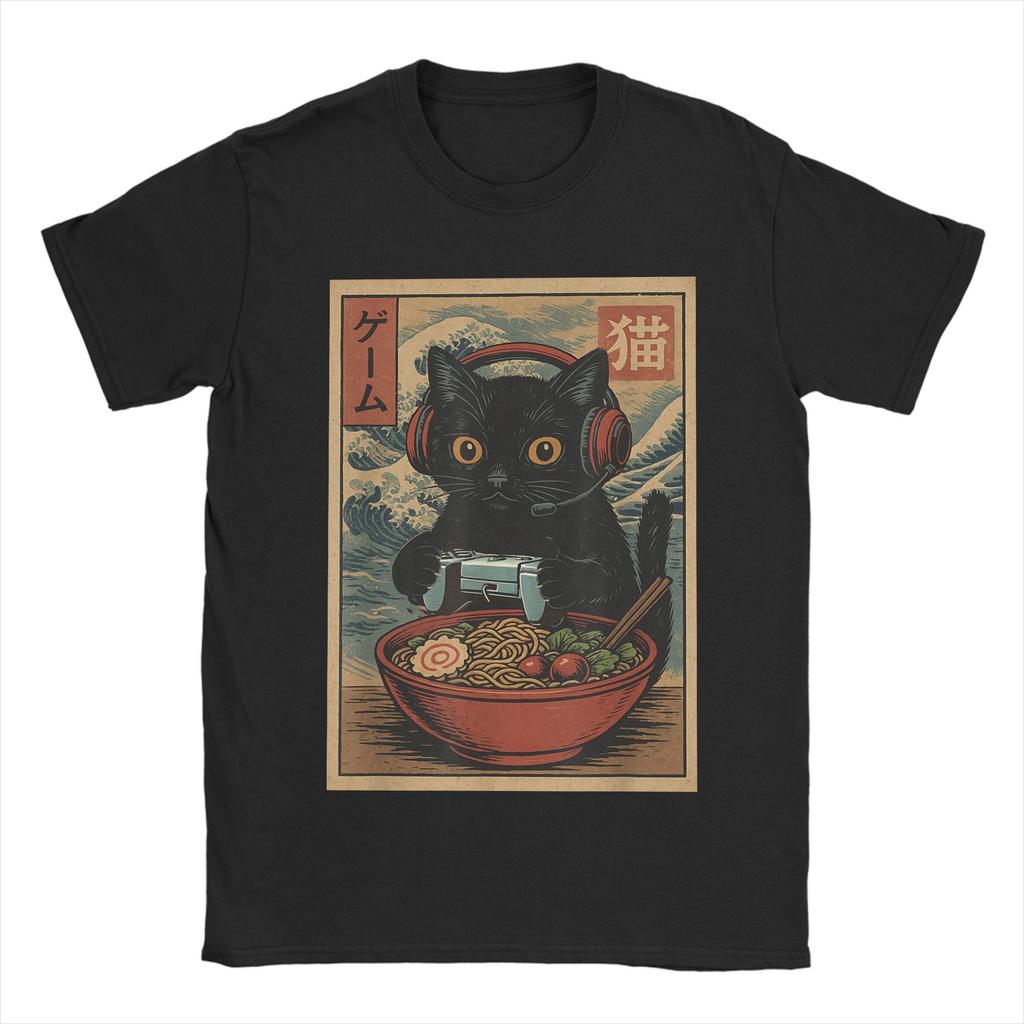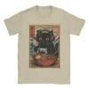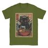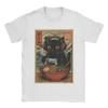 Niesamowite japońskie koszulki z kotem ramen dla mężczyzn z okrągłym dekoltem 100% bawełniane koszulki Kawaii kot z makaronem koszulki z krótkim rękawem oryginalne topy