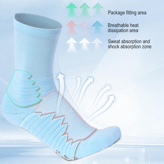 Enhanced Performance Features: Designed with a multi-layer anti-abrasion structure and a thickened terry sole, these socks provide superior shock absorption and high elasticity. The added anti-slip yarn on the sole improves grip, helping to boost athletic performance and prevent slipping.