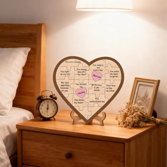 Celebrate family unity with this heart puzzle, a beautifully crafted wooden plaque symbolizing love and togetherness. Each heart-shaped piece can be personalized with the names of your loved ones, making it a meaningful commemorative gift for Christmas, weddings, anniversaries, or Mother's Day.
