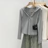 Contrasting color fake two-piece hooded knitted sweater for women's spring and autumn casual lazy outside with long-sleeved shirt top