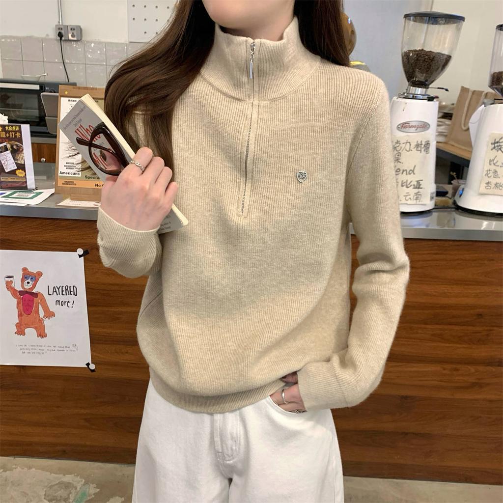 Autumn and winter new semi-zipper stand-up neck sweater knitted sweater loose and versatile Andy fleece long-sleeved top women