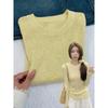 Grey soft waxy round neck pullover bottoming sweater knitted sweater women's spring slim and thin inner shoulder top