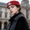 Kapelusz typu pillbox w jednolitym kolorze, beret z filcu z dżetami, kapelusz w kształcie łzy, nakrycie głowy, kapelusz Hurch Derby