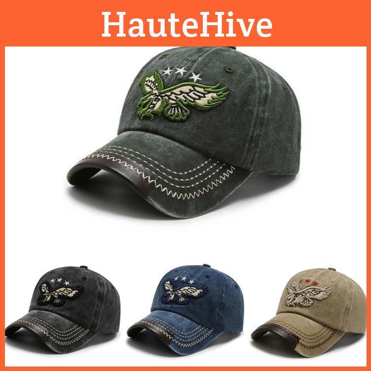 Trendy Black Adjustable Baseball Cap With Vintage Eagle Embroidery For Outdoor Style