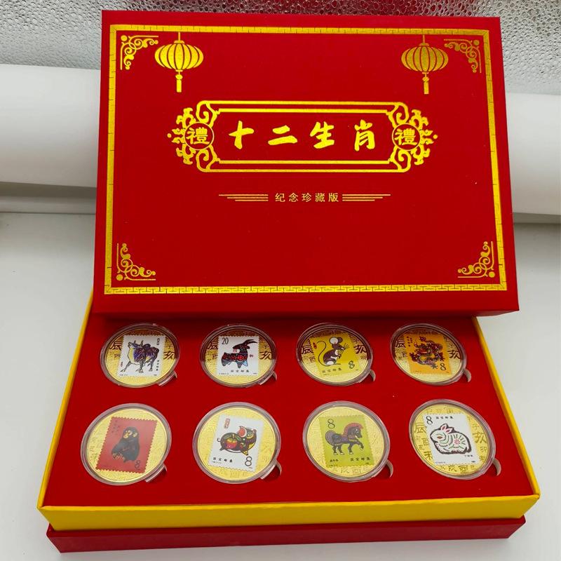 Zestaw Dwunastu Pamiątkowych Medali Zodiakalnych, Kolorowe Złote Monety, Prezenty na Wydarzenia, Czerwone Otwarcie, Prezent przy Wejściu, Prezent Świąteczny, Wypełniacze do Skarpet