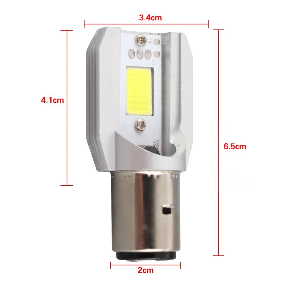 This BA20D motorcycle headlight has a high brightness, which can be installed on the head of motorcycles and scooters to shape a high or low light beam guiding your driving roads. Thanks to the aviation aluminum radiator, this headlight has an excellent performance of heat dissipation and a long lasting lifespan. What's more, the headlight is a COB type shining a uniform light without spots. What are you hesitating for?