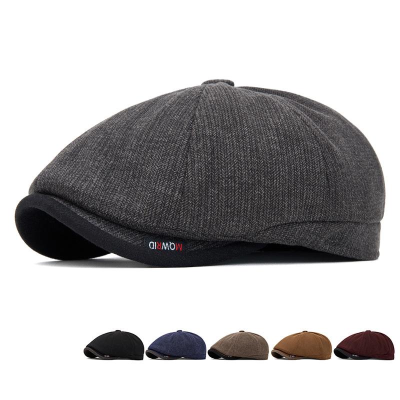 Beret Jesień Zima Męski Aksamitny Ciepły Kaszkiet Brytyjski Kapelusz Vintage Jednokolorowy Kapelusz Gazeciarza