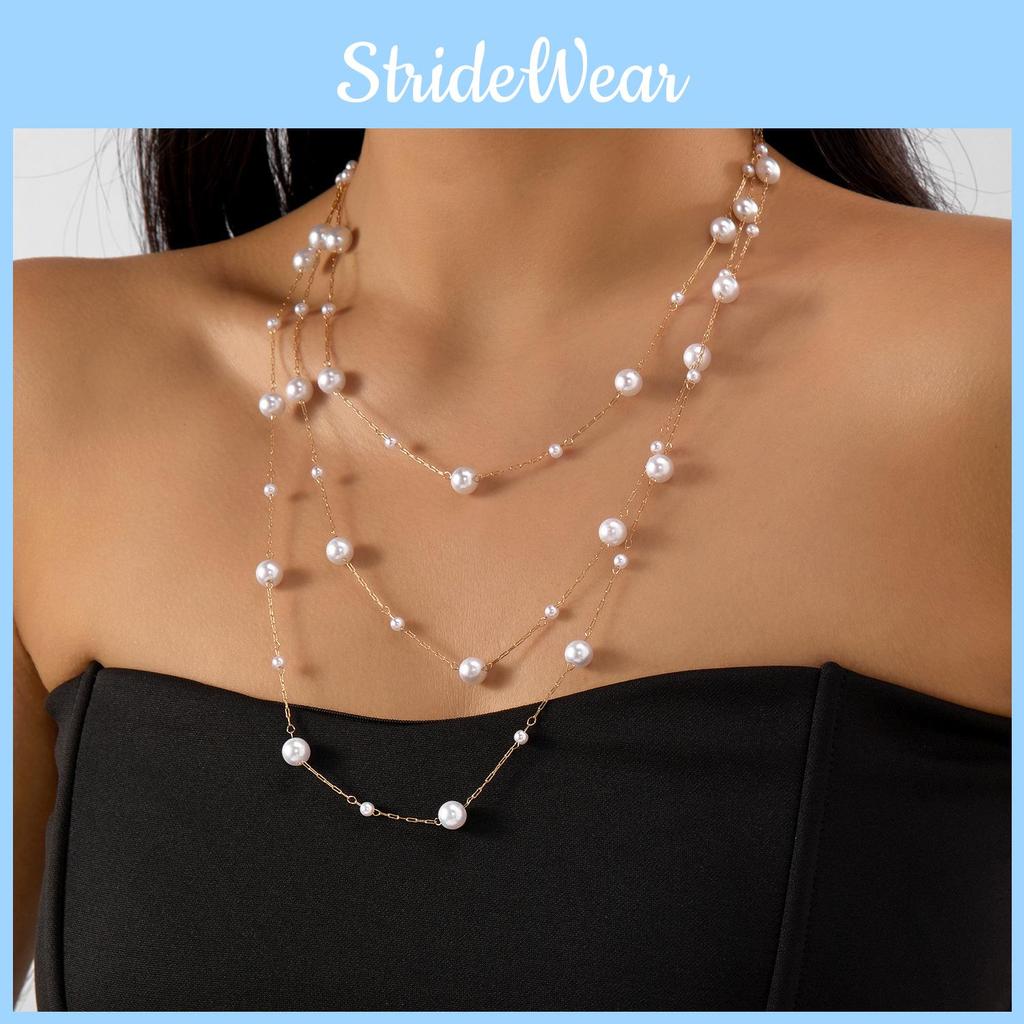This jewelry set features a multilayer chain design crafted with imitation pearls, measuring 45cm in length. The geometric pendant adds a modern touch, making it suitable for youthful fashion. Made with hand-finished techniques, it offers a lightweight feel of. Ideal for casual or art-inspired outfits, its easy to maintain by wiping with a soft cloth.