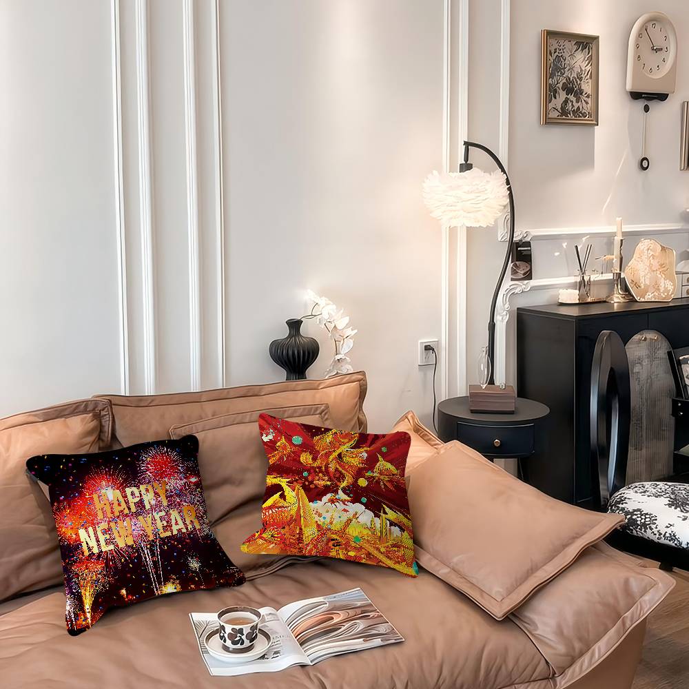 Art New Year Pillow Cushion Cover Pillowcase Living Room Sofa Home Decor Customized