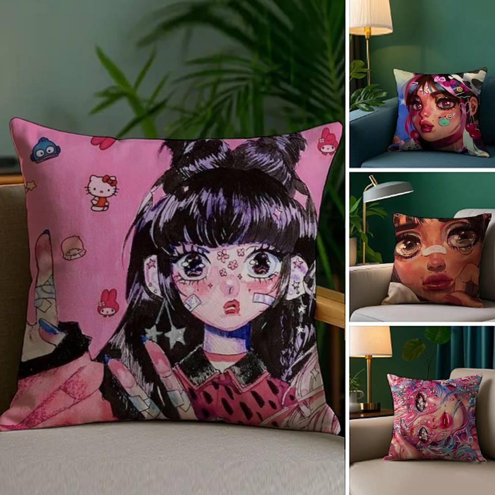 Beautiful Girl With Color Paint Pillow Case Printed Brushed Fleece Pillow Baby Skin-Touch Eco-Friendly Dye-Sublimat
