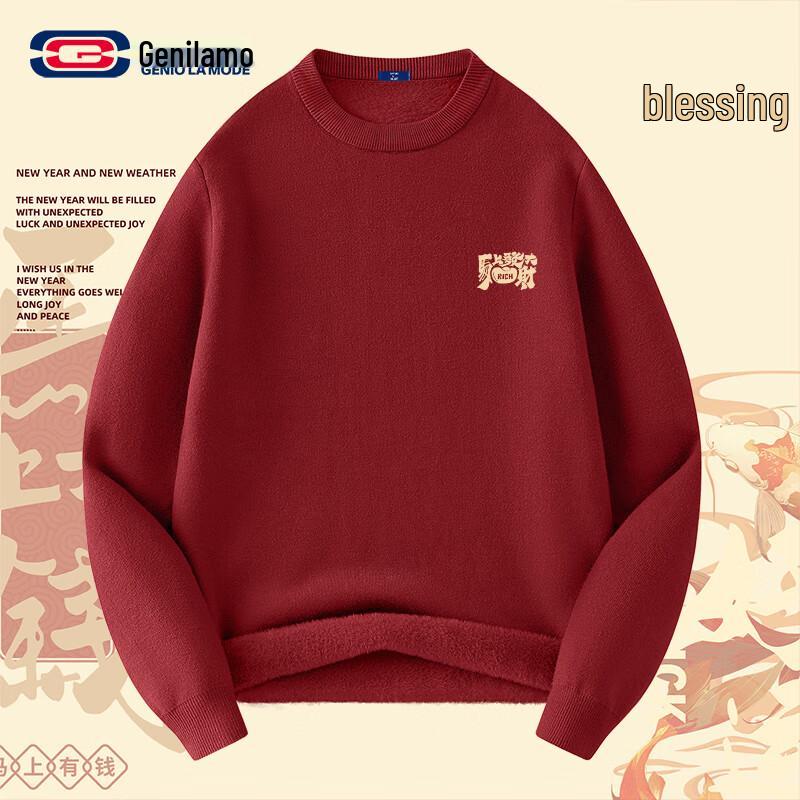 GENIOLAMODE Unisex Year of the Horse Fleece-Lined Red Sweater