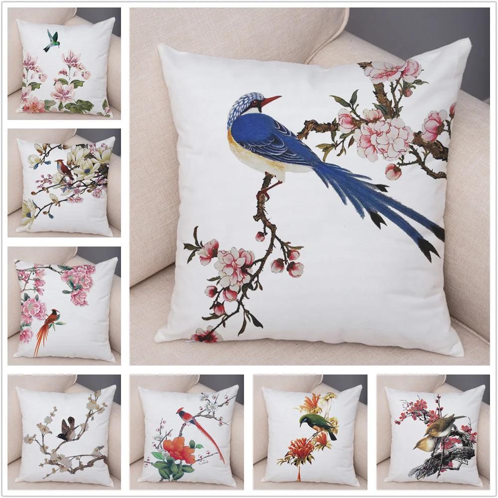 Super Miękka Miękka Pluszowa Akwarela Urocze Ptaki Kwiat Robin Sikorka Zięba Gil Jerzyk Wróbel Jagody Czubata Poszewka na Poduszkę Poszewka na Poduszkę